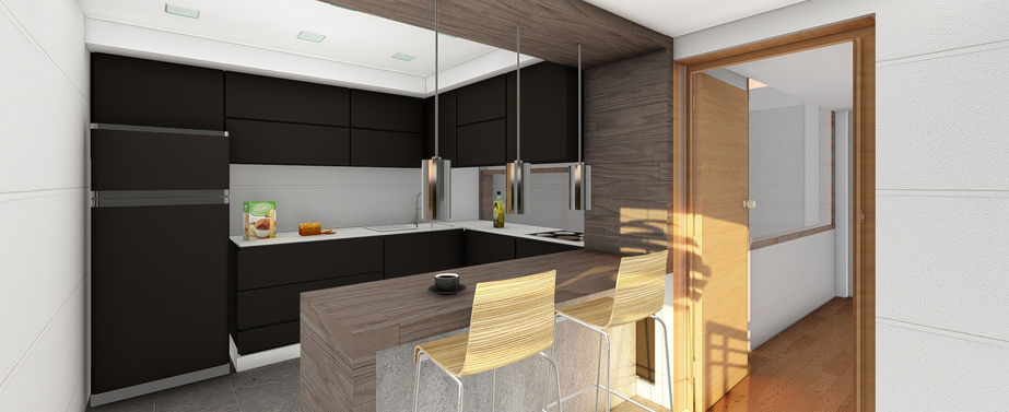 Diseño Interior cocina y terraza, Modelado 3D y Ambientación